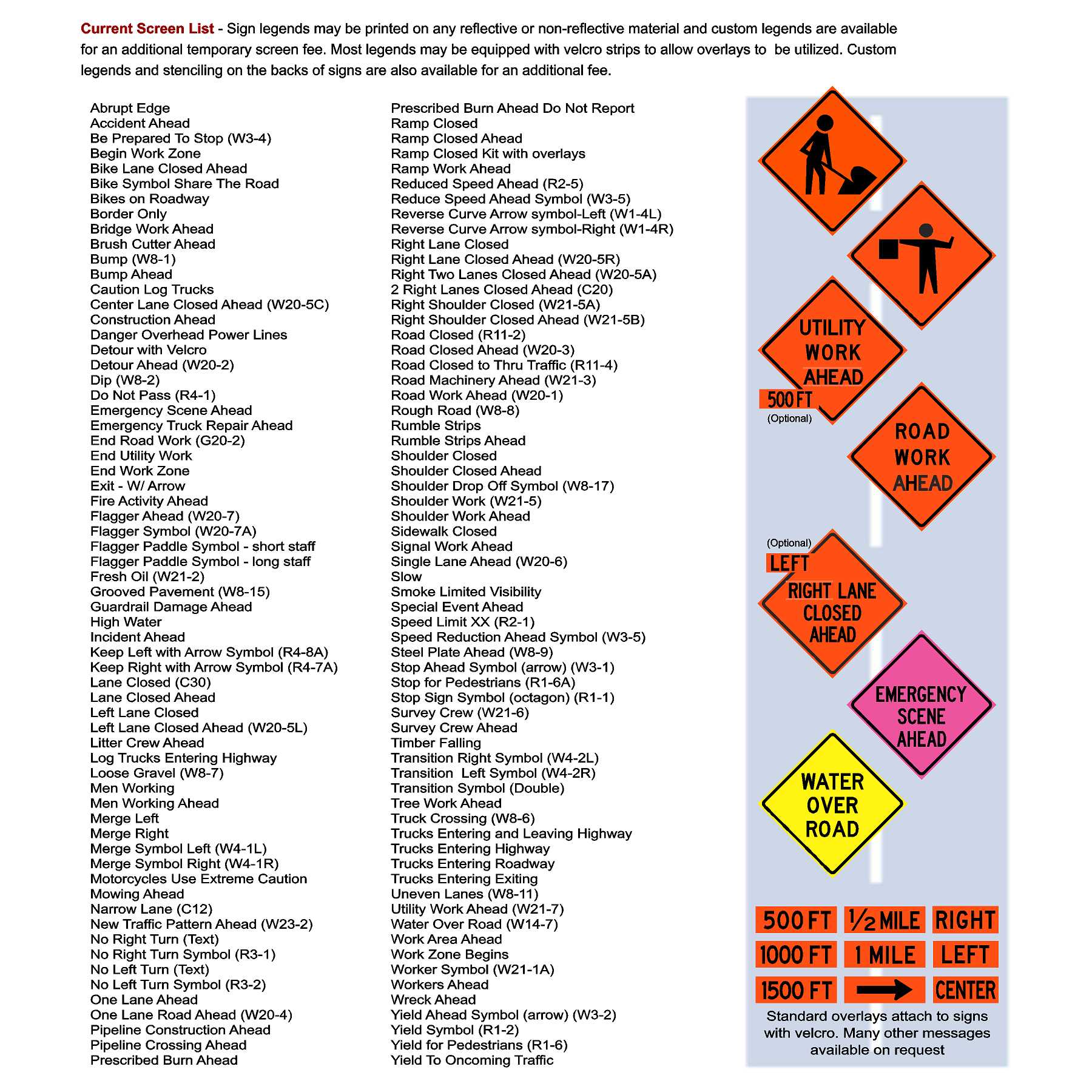 Roll Up Sign List of Standard Legends